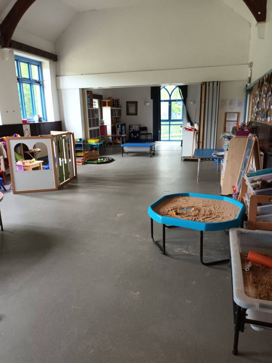 Tables and chairs are available to support different activities, these are stored in the back room.